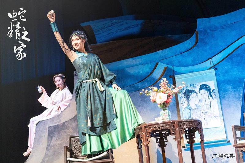 相比之下,温方伊编剧的《慧眼》和《蛇精之家》呈现出不同的面貌。两部短剧不再执着于情节的严丝合缝,也放弃了观点的全盘输出,更具中国传统戏曲折子戏的意味。《慧眼》则重新想象了戏曲舞台上的《红鬃烈马》,将薛平贵置于帷幕之后,而置代战与王宝钏于台前,让她们的学识、野心、韧性在故事中占据应得的位置。在温方伊的新诠释下,花园赠金、抛球选婿、苦守寒窑等一连串佳话的成就,并非源于“一见钟情”,而是王宝钏“慧眼识英雄”的“投资”。英雄与贞妇、驯化与被驯化的刻板关系由此倒转;《蛇精之家》则选取《白蛇传》中许仙前往金山寺出家前的一个片段,想象了许仙在动身前与白娘子摊牌的场景 。其不强调情节的整一性,舞台未正面呈现“前因”,“后果”也具开放性,着重展现“此时此刻斗室里的风暴”。剧中白娘子早已看透许仙的懦弱与虚伪,她的执念或许在于融入人间规则,而非许仙本人。编剧聚焦两性关系的信任与猜忌、身份与规训,让“人妖相恋”的民间传说遇上《玩偶之家》式的探讨。